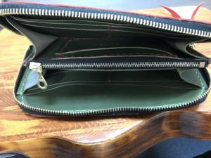 密かにご連絡を頂き,旦那様と打合せ製作するウォレットの仕様を決めさせて頂きました。