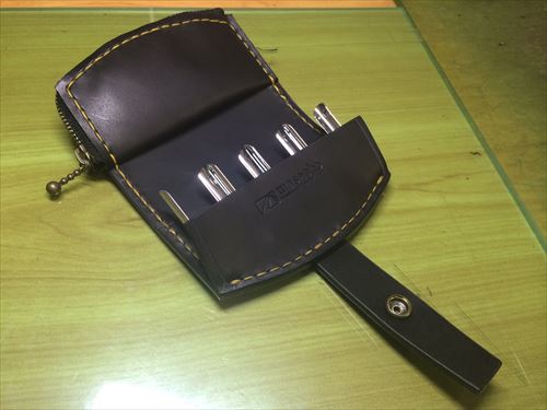 彼氏へのプレゼントということで 宮城県仙台市のO様(女性)よりオーダー頂きました,レザーコインキャチャーケース(CCK-01BK)です。 栃木レザー多脂革(艶消しブラック)で製作! 10円,50円,100円,500円のコインキャッチャー! ファスナー部は1円,5円を収納する別途小銭入れ! ワイルドさを出す為,表革部分は厚めの革を使用! 彼氏へのプレゼントと言うことでラッピングサービスも……..素敵な日になればいいですね✩……