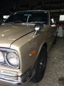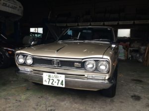 車屋さんの社長とハコスカを引き取ってきて工場の中に入れ