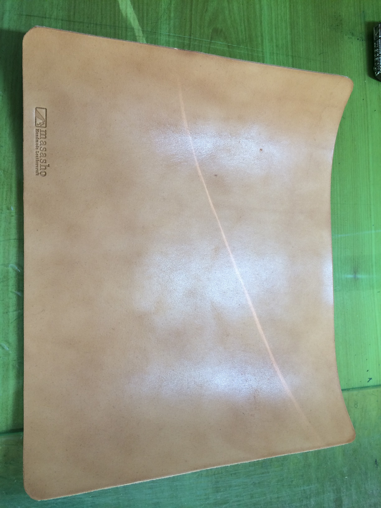 使用レザーは栃木レザー多脂革(生成色)経年変化の促進もありオイルアップしてお渡しいたしました。。