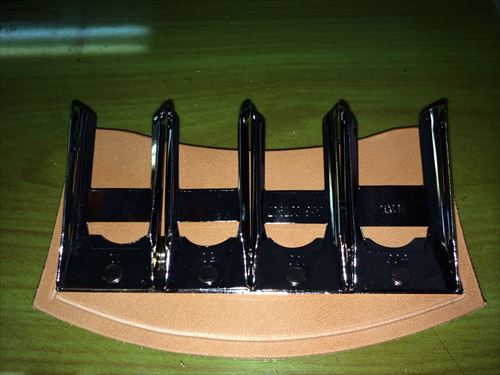 革を金具から保護する革を取り付け!