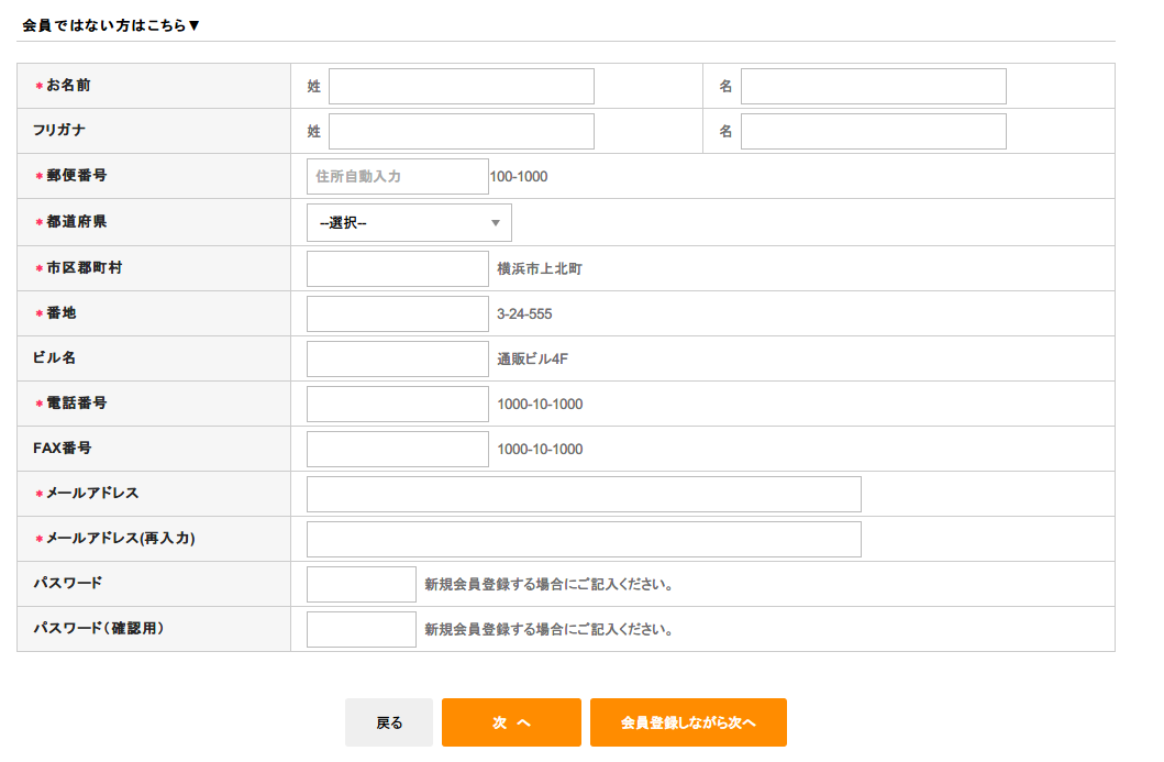 「次へ」をクリックしてお客様の情報をご入力してください。
