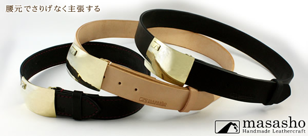 バックルの表にはmasashoのロゴが浮き彫りにワンポイント。