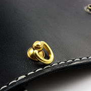 ウォレット表面に見えるドロップハンドル.コンチョ.ボタンは全て真鍮製です。