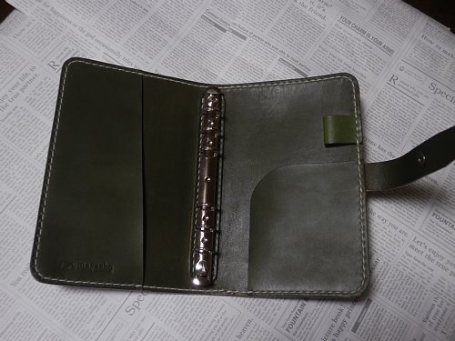 その独特な質感を最大限に引き出すため、 表面ばかりでなく見開き面にもヌメ革を使用しました。